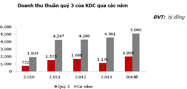 In early August, KDC released its business results for Quarter 2 of 2014 with VND 1,004 bn in net sales and VND 60 bn in net profit, an increase of 12% and 31% compared to Quarter 2 of 2013; Gross profit margin is maintained at 41.9%. In the first 6 months, KDC earnt VND 1,797 bn in net revenue, an increase of 5% compared to the same period last year and profit after tax increased by 19% to VND 93 bn.