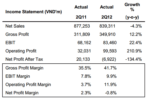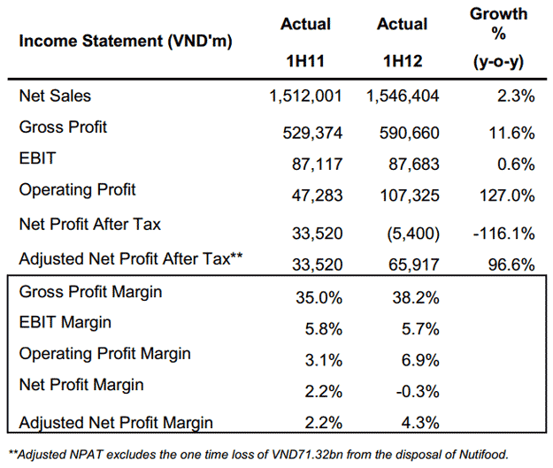 - The disposal of Nutifood resulted in a net loss of VND71.317bn on a consolidated basis in 2Q12.