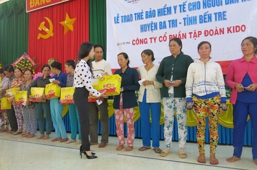 Đại diện nhà tài trợ KIDO trao tặng quà Đại Gia Đình và thẻ BHYT cho bà con huyện Ba Tri – tỉnh Bến Tre
