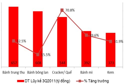 Mặc dù vậy, mức tăng trưởng doanh thu của mặt hàng bánh trung thu chưa phải là cao nhất. Trong 9 tháng đầu năm Craker/bánh quế là mặt hàng có mức tăng trưởng doanh thu cao nhất đạt mức 70,8%.