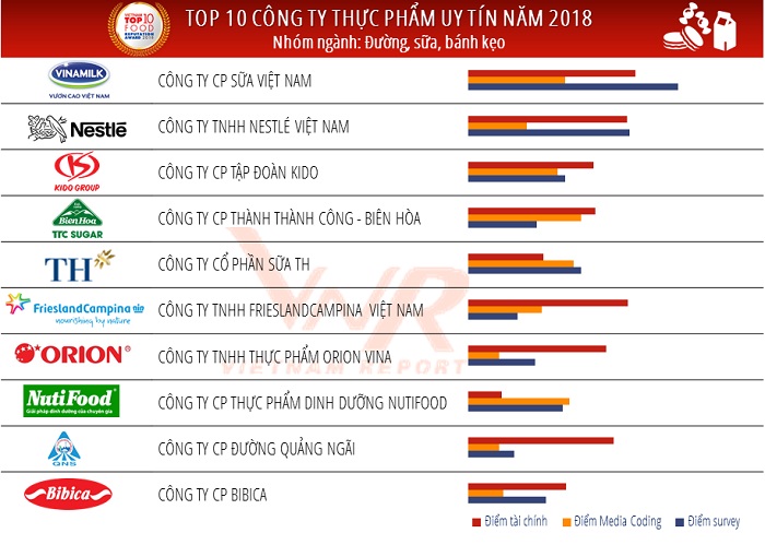 Nguồn: Vietnam Report, Top 10 Công ty uy tín ngành thực phẩm – đồ uống năm 2018, tháng 10/2018