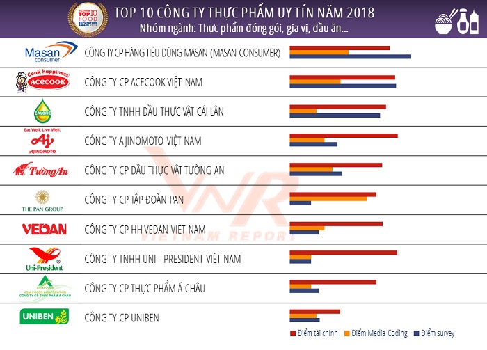 Danh sách Top 10 Công ty thực phẩm uy tín năm 2018 - nhóm ngành: Thực phẩm đóng gói, gia vị, dầu ăn,...