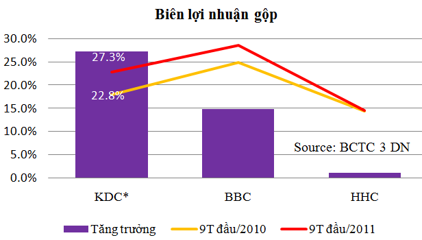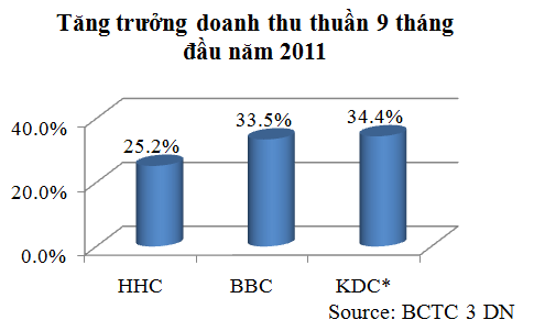 Bài viết sử dụng báo cáo tài chính quý III/2011 của BBC, HHC và KDC* - KDC mẹ.