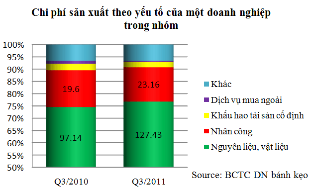 BBC trong quý II/2011 sản lượng tiêu thụ đã tăng 2%, giá bán bình quân tăng đên 15% so với quý II/2010; trong quý III/2011, giá bán bình quân tăng đến 23% so với cùng kỳ năm trước. KDC cũng tương tự khi sản lượng tiêu thụ bánh trung thu năm nay tăng hơn 10% so với mùa trung thu năm 2010 đã giúp cho doanh thu từ mặt hàng này năm 2011 tăng 31% so với cùng kỳ năm trước.