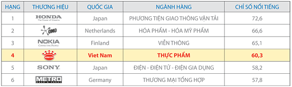 Xếp hạng các thương hiệu hàng đầu VIỆT NAM (nguồn ACNielsen)