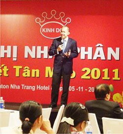 Anh Lê Anh Quân – Phó TGĐ Marketing trình bày bối cảnh mùa vụ, những cơ hội và thách thức, danh mục sản phẩm Tết và đặc biệt là chiến lược quảng bá cùng các hoạt động truyền thông trong chiến dịch Tết 2011 nhằm hỗ trợ hoạt động kinh doanh cũng như tạo sự chuyển tiếp rõ nét từ thông điệp đến chính cảm nhận của người tiêu dùng: “Thấy Kinh Đô là thấy Tết”. Các nội dung trình bày về Chính sách thưởng đạt và vượt doanh số cho NPP; hoạt động trưng bày, thưởng trưng bày của bộ phận Trade Marketing... cũng nhận được nhiều sự quan tâm của quý NPP. Đặc biệt, nội dung trình bày về hoạt động trưng bày và thưởng trưng bày đã nhận được sự quan tâm và đóng góp ý kiến của đông đảo nhà phân phối. Đây là một trong những chương trình hỗ trợ hoạt động kinh doanh Tết mang tính đột phá và được đầu tư rất lớn của công ty, được triển khai từ ngày 25/10/2010 – 15/01/2010 dành cho khách hàng sỉ và khách hàng lẻ với 5 chương trình hấp dẫn: Vạn Sự Như Ý, Tấn Tài Tấn Lộc, Rước Lộc Phú Quý, Mã Đáo Thành Công & Hạnh Phúc An Khang.