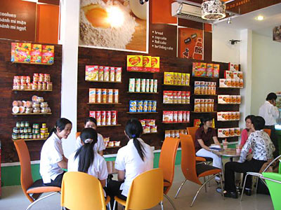 Công ty Kinh Đô Sài Gòn (thành viên của Kinh Đô Group) giới thiệu mô hình mới tại BAKERY Nguyễn Thái Học với một không gian hoàn toàn mới mẻ.   Mô hình kinh doanh hiện đại bánh tươi và thức uống của Kinh Đô Bakery đang nhân rộng và ngày càng được sự tín nhiệm của người tiêu dùng. Nhân dịp khai trương quầy nước tại Bakery Nguyễn Thái Học , công ty Kinh Đô Sài Gòn ra mắt mô hình cửa hàng Kinh Đô Bakery mới năng động hơn, trẻ trung hơn, không gian dịu mát  với hai gam màu chủ đạo là cam và xanh lá. Nếu như cam là màu sắc tượng trưng cho năng lượng tràn đầy, sự trẻ trung, năng động thì màu xanh lá là màu của thiên nhiên, của không gian trong lành. Tại đây, các bạn có thể vừa thưởng thức đủ loại nước uống thơm ngon vừa nhâm nhi những chiếc bánh ngọt thơm lừng của Kinh Đô Bakery.
