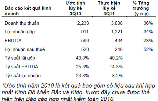 Công ty Cổ phần Kinh Đô (KDC-HOSE) vừa công bố kết quả kinh doanh quý 3 và 9 tháng năm 2011.