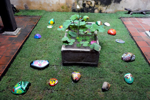 | Mặt nạ nặn từ đất. Tới 28 Hàng Buồm mọi người có thể thử tự tay nặn đất ra các hình thù tùy thích. |