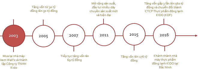 Năm 2012, hoạt động kinh doanh của CTCP Thực phẩm Đông lạnh KIDO – Kido Foods (KDF) đã tăng cường đầu tư cho hoạt động quảng cáo, marketing trong các năm 2011 – 2012. Đến năm 2016, KDF sở hữu hệ thống phân phối với 70.000 điểm trên cả nước, mở rộng hệ thống đến tuyến huyện; 196 xe lạnh; và kho lạnh phủ khắp Việt Nam với tần suất trong khoảng 400km/kho lạnh.