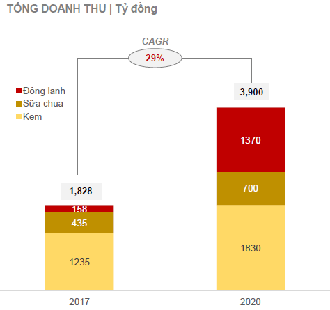 Ngành kem được dự báo tiếp tục đóng vai trò chủ đạo trong hoạt động kinh doanh của KDF trong năm 2017, với tỷ trọng đóng góp doanh thu hơn 70%. Dù ngành kem được dự báo sẽ có mức tăng trưởng kép 7%/năm cho giai đoạn 2016 – 2021 thì quy mô của ngành không lớn và tính mùa vụ cao, khó có thể giúp KDF đạt được tham vọng về doanh nghiệp tỷ USD, hay khai thác tối ưu hệ thống sẵn có của họ.