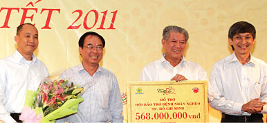 Ông Nguyễn Thành Tài - Phó Chủ Tịch thường trực UBND Tp.HCM và ông Lê Anh Quân - Phó Tổng Giám Đốc Công ty Kinh Đô cùng trao gửi Vườn Nhân Ái cho đại diện Hội Bảo trợ Bệnh Nhân Nghèo Tp.HCM
