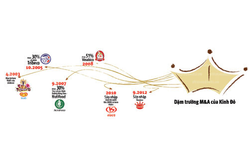 Kinh Đô là một trong những doanh nghiệp đi đầu trong chiến lược M&A. Song song với phát triển các sản phẩm mới, Kinh Đô liên tục mở rộng hoạt động thông qua việc mua bán sáp nhập các doanh nghiệp khác.