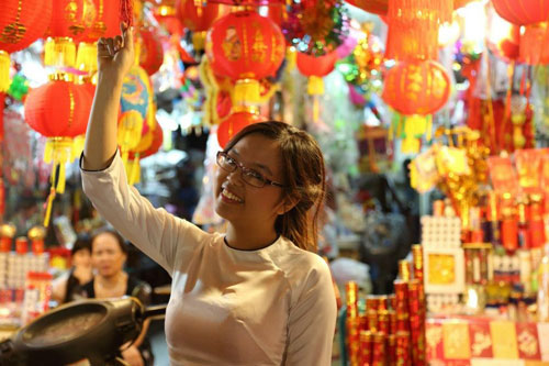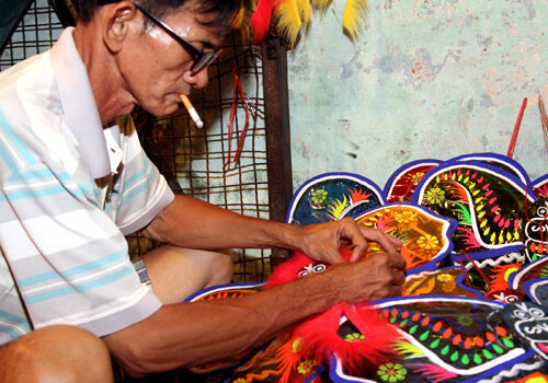 Ông Chính, một người bán hàng lâu năm trên phố Lương Nhữ Học hoàn thành những chi tiết trang trí cuối cùng trên chiếc đèn lồng trước khi giao cho khách hàng. Giá bán mỗi chiếc lồng đèn dao động ở mức từ 20.000 đồng một chiếc lồng đèn nhỏ, đến hàng trăm nghìn đồng cho những chiếc lồng đèn lớn.