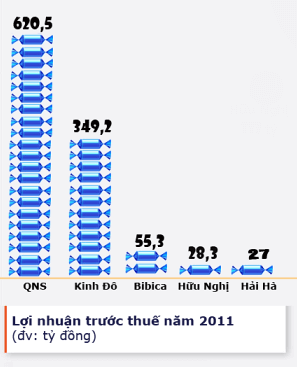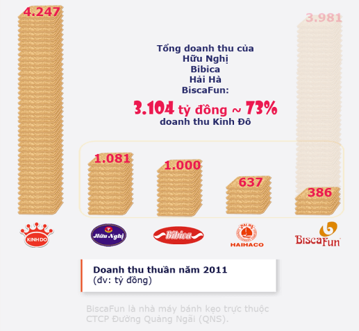 Với nhiều dòng sản phẩm đa dạng, doanh thu của Kinh Đô hiện vượt trội so với các doanh nghiệp bánh kẹo lớn khác.