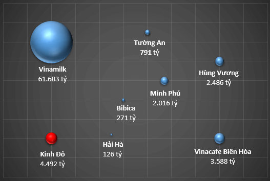 Vốn hóa thị trường (ngày 14/8/2012) của một số doanh nghiệp thực phẩm. Đơn vị: tỷ đồng